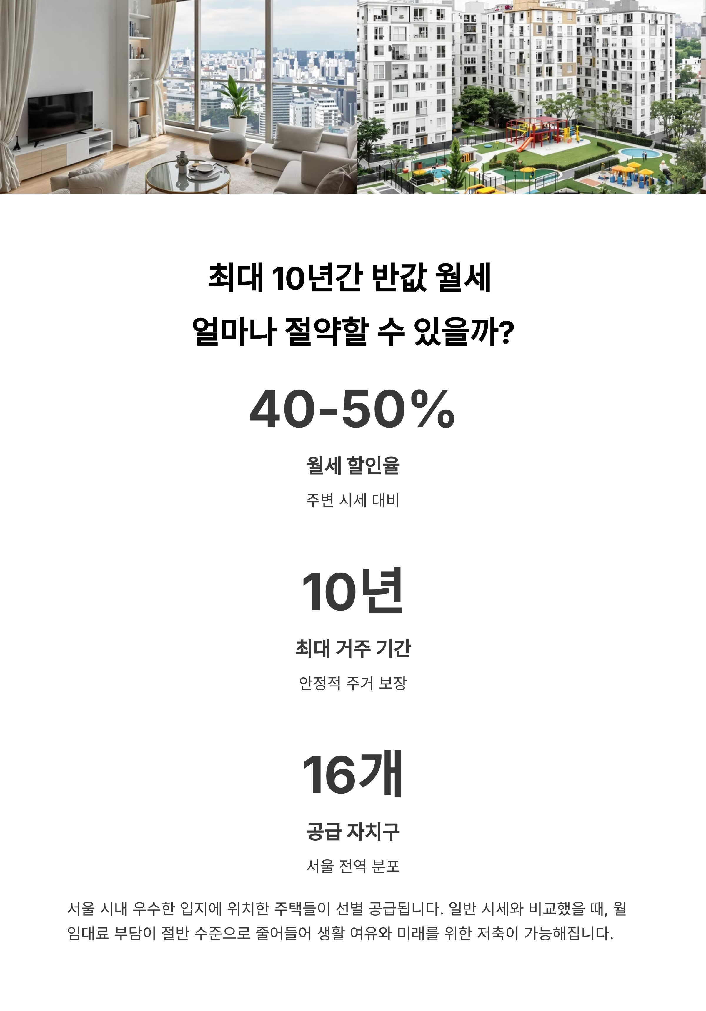서울 주요 16개 구에서 공급되는 이번 임대주택은 시세의 반값 수준이라 정말 놓치면 아쉬운 기회예요.