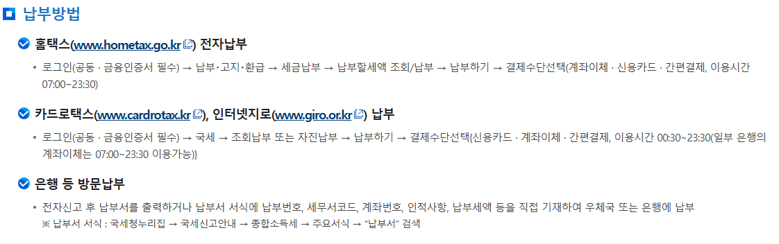 | 신고방법 | 홈택스 / 손택스 / 전화ARS / 방문 |