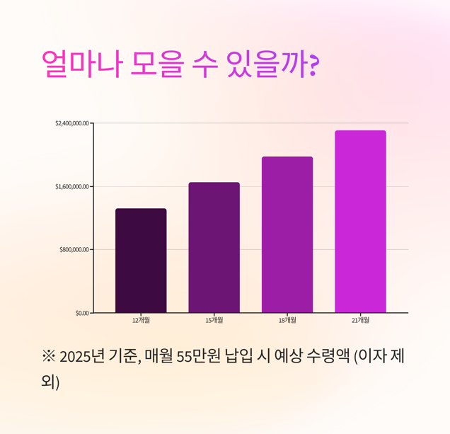 2025년 제도 개편으로 최대 2천만 원 이상의 목돈까지 준비할 수 있는 절호의 기회예요.