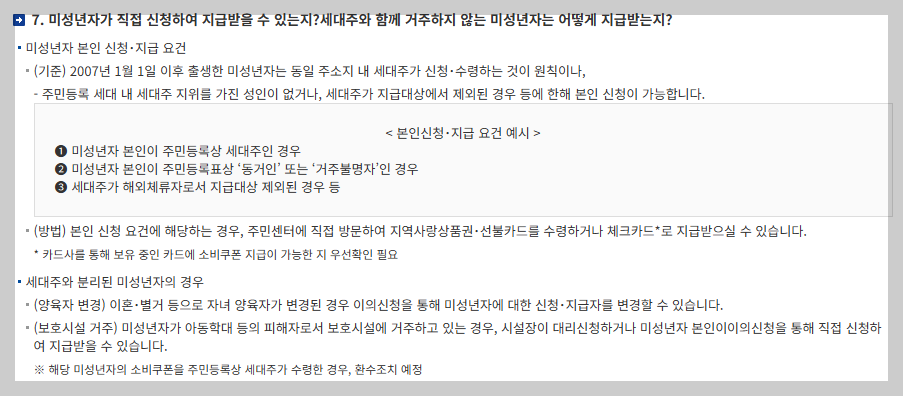 - 세대주가 성인일 경우: 세대주가 미성년 자녀를 대신해 신청