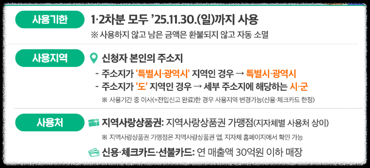 - 📌 광역시/도 단위로만 사용 가능 (예: 서울 신청자는 서울 내에서만 사용 가능)