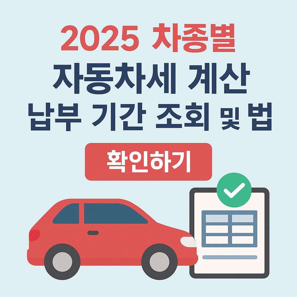 2025년 차종별 자동차세 납부기간, 차종별 세율표, 계산법, 조회 및 납부 방법을 상세히 안내 해 드리겠습니다. 연납할인 혜택과 차량 종류별 세금 정보까지 실용적으로 잘 정리했습니다.