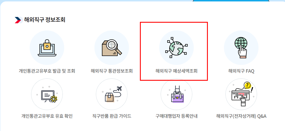 해외직구 해외통관 예상세액 조회