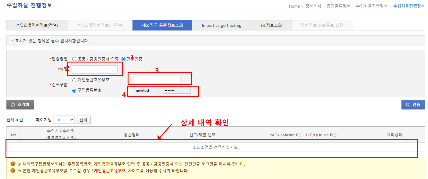이 과정을 실시간으로 확인할 수 있는 방법이 바로 ‘통관정보 조회’입니다.