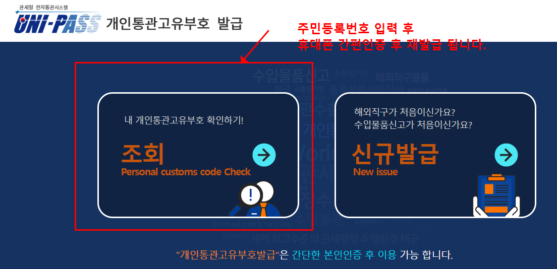 개인통관고유부호 재발급 하기