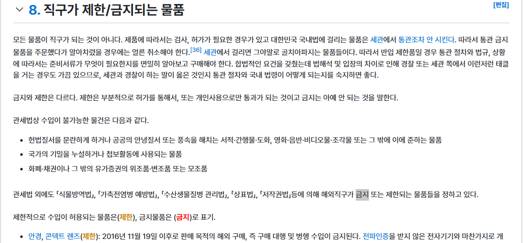 관세청은 반입금지 또는 제한 품목을 지정하고 있으며, 해당 품목은 세관 단계에서 압류되거나 폐기될 수 있습니다.