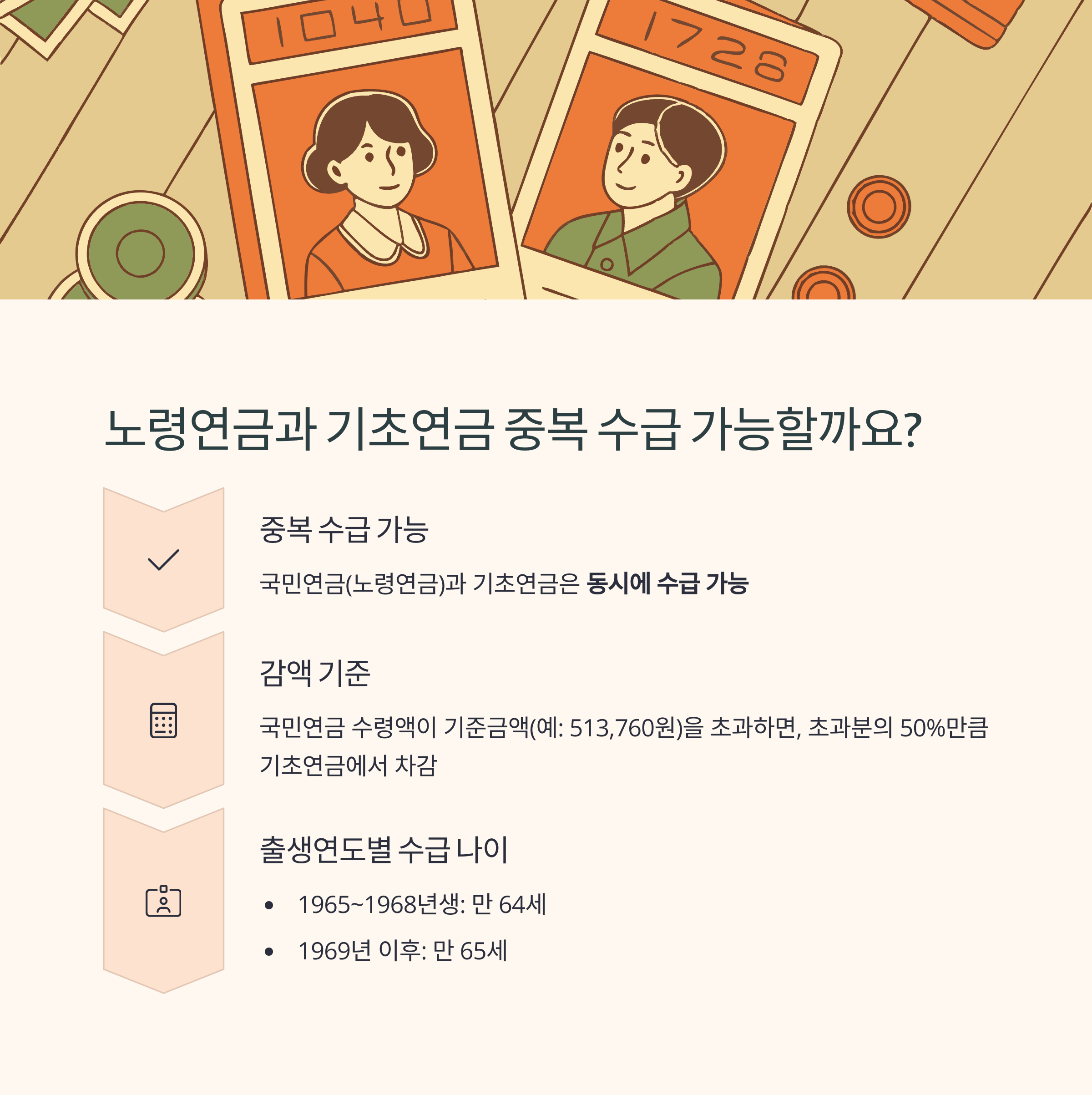 다만 국민연금 수령액이 많을 경우 기초연금이 일부 감액될 수 있어 사전 조회는 필수입니다.